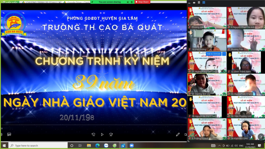 Hoà chung với không khí phấn khởi của ngành giáo dục trong cả nước kỉ niệm 39 năm ngày Nhà giáo Việt Nam (20/11/1982 - 20/11/2021), Trường tiểu học Cao Bá Quát đã phát động các hoạt động thi đua trong giáo viên và học sinh để chào mừng ngày lễ trọng đại này. Nhưng trước tình hình dịch COVID – 19 đang diễn biến phức tạp, để đảm bảo cho sức khỏe của toàn thể học sinh và giáo viên nhà trường đã tổ chức buổi lễ theo hình thức trực tuyến: