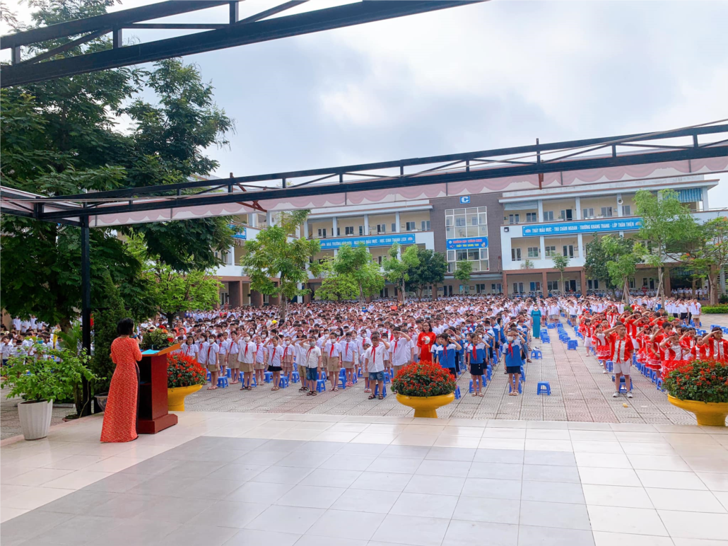 Toàn trường thực hiện nghi thức chào cờ, hát quốc ca